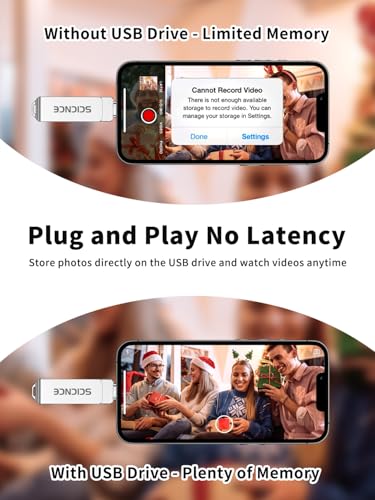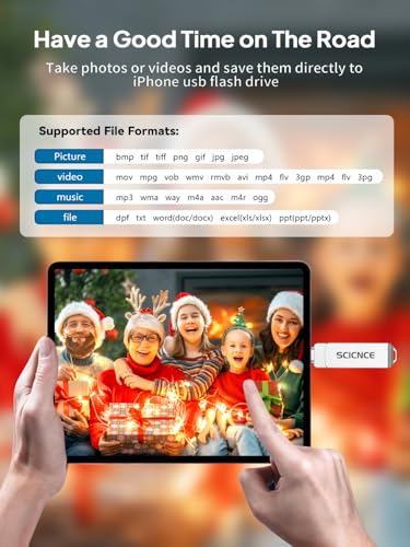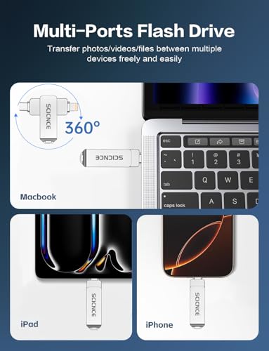 SCICNCE Unidad flash de 256 GB diseñada para iPhone, memoria USB de almacenamiento de respaldo para fotos y videos, Plug and Play, no requiere aplicación, compatible con iPhone, iPad, Android y