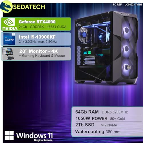 Sedatech Pack PC Gaming Pro Watercooling • Intel i9-13900KF • RTX4090 • 64Gb DDR5 • 2Tb SSD M.2 • Windows 11 • Monitor 28″
