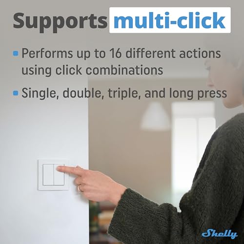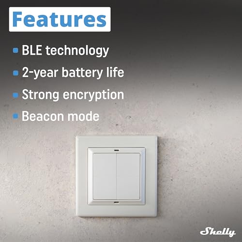 Ningún cableado necesario – Perfectamente compatible con varias placas de enmarcado, el Shelly BLU Wall Switch no requiere cableado adicional. La batería de 3V incluida tiene una duración de 2 años y elimina las complicaciones de una instalación eléctrica