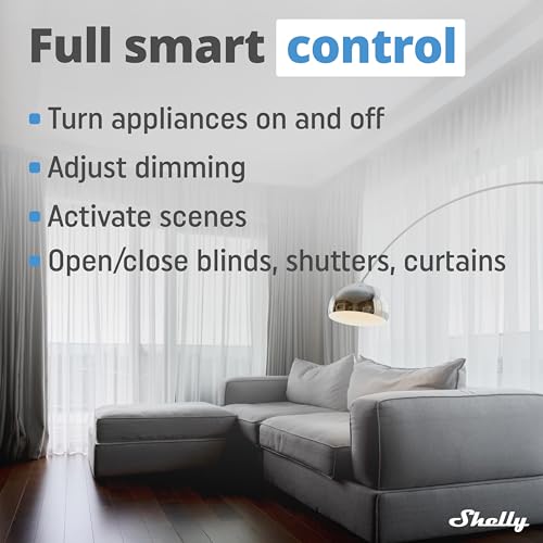 Con la App Shelly Smart Control, puede controlar a distancia sus dispositivos Shelly y enviar notificaciones de todos los eventos automatizados de su hogar; puede configurar fácilmente los dispositivos y gestionar sus ajustes individualmente o puede crear escenas personalizadas combinando dispositivos Shelly para activar acciones específicas en su sistema domótico