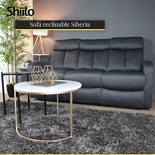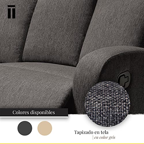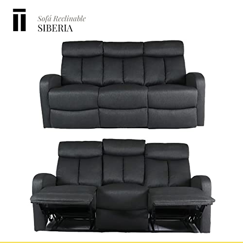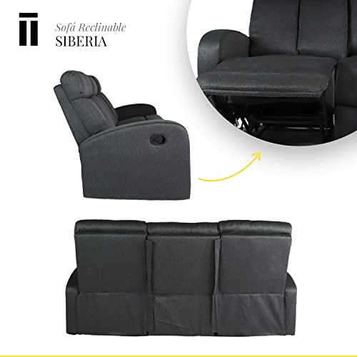 SHIITO – Sofá de 3 Plazas y Función Relax – 180 x 100 x 95 cm – Modelo Siberia – 2 Asientos Respaldo y Reposapiés Reclinables – Apertura Manual – Gris