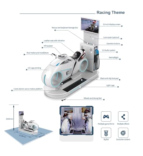 Especificaciones: Simulador 9D Vr Motion Ride Moto Conducción Realidad Virtual Rueda Espacial Motocicleta Carreras