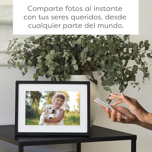 Diseño simple y duradero. Disfruta de la maravillosa pantalla táctil a color de 10 pulgadas con resolución de 1280 x 800 al subir y compartir fotos con tus seres queridos. El almacenamiento está basado en la nube, sin necesidad de tarjeta SD.
