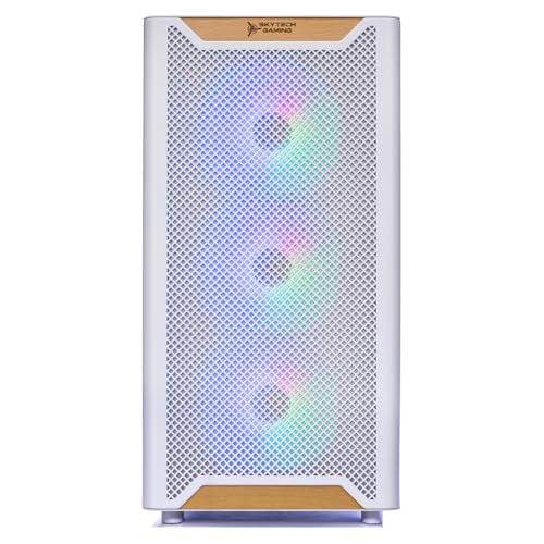Enfriador de aire de alto rendimiento: máximo flujo de aire y ventiladores ARGB | Skytech Chronos Case White Edition con malla frontal | 1 año de garantía en piezas y mano de obra | Soporte técnico gratuito | Ensamblado en los Estados Unidos