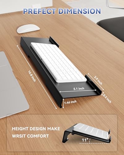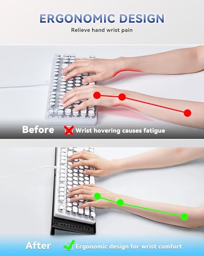 Diseño ergonómico: el soporte de teclado de acrílico con buen ángulo y altura que hará que su muñeca esté cómoda. El elevador de teclado inclinado con reposamuñecas elimina la tensión de las muñecas, antebrazos y codos debido a las largas horas de trabajo frente a la computadora