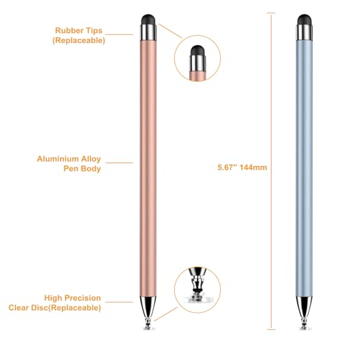 Lápiz óptico 2 en 1: bolígrafo para tableta para pantalla táctil, hecho de aleación ligera, sin necesidad de conexión Bluetooth o carga, listo para usar después de abrir el paquete, cómodo en la mano, resistente, duradero y antienvejecimiento, por lo que puedes usarlo en cualquier momento y en cualquier lugar. Captura fácilmente la inspiración y hace que todo se sienta como escribir en papel, dándote una experiencia de escritura/dibujo/toque más precisa.