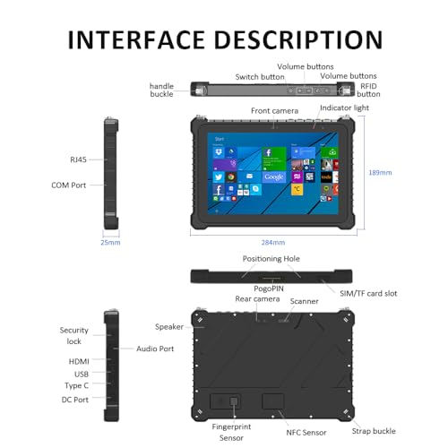 EXCELENTE DURABILIDAD DE LA BATERÍA: Tablet PC industrial con batería inteligente de iones de litio de polímero integrada, 12000 mAh / 3,8 V, la tableta resistente con pantalla táctil puede soportar 10 horas de uso. El diseño de bajo consumo permite mucho tiempo de trabajo de campo, sin preocuparse por la pérdida de datos en el campo. Una herramienta de producción esencial para realizar trabajos, ideal para el trabajo móvil empresarial.