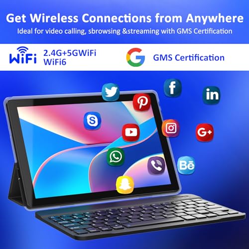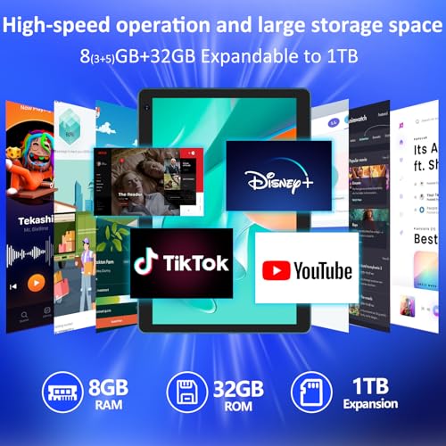 【6 GB de RAM+32 GB ROM Tablet】 Esta tableta de 10.1 pulgadas está equipada con 6 GB (incluyendo 4 GB de memoria ampliable) y 32 GB de ROM de gran espacio de almacenamiento, soportando una expansión máxima de 1 TB (tarjeta micro SD). Tiene una velocidad de reacción más rápida y multitarea. La tableta ha pasado la certificación GMS de Google y puede obtener varias aplicaciones principales de Google Store, como Twitter, TikTok, Line, Instagram y más.