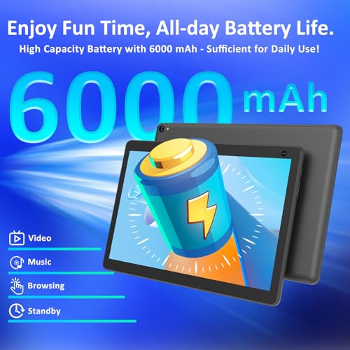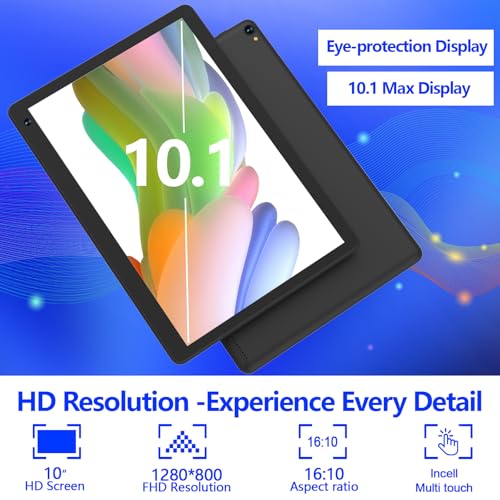 Especificaciones: Tablet Android 15 de 10 pulgadas, 6GB RAM 32GB ROM Potente CPU de cuatro núcleos, pantalla de resolución 1280* 800 Tablet PC, Cámara de 8MP, computadora con batería de 6000mAh, Tabletas 2 en 1 con