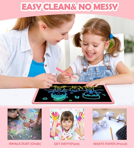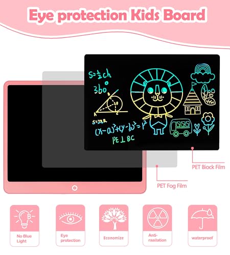 FÁCIL DE USAR: La pantalla de la tableta de escritura lcd es 80% más brillante que antes, proporcionando una mejor experiencia de pintura y escritura. La tableta de escritura LCD juguetes para niños tiene la tecla de borrado y la función de bloqueo de la pantalla, puede vaciar el contenido de la pantalla en un segundo, también puede guardar la pantalla a través del botón de bloqueo del tablero de escritura.
