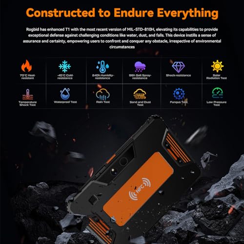 Tableta Robusta de 10.3», IP68 IP69K Triple Defensa, Pantalla 2K HD, 8+256GB, 16+48MP, 5G Dual SIM, GPS WiFi NFC OTG Bluetooth Desbloqueo Facial con Huella Dactilar, PD60W, para