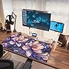 Tapete de escritorio con diseño floral para videojuegos, alfombrilla grande para teclado de escritorio, alfombrilla larga para computadora, patrones artísticos de vidrieras sintéticas, protector de