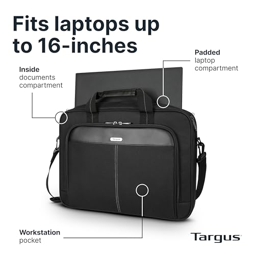 Targus Classic Slim Laptop Bag – Ergonomic Briefcase and Messenger Bag – Spacious Foam Padded for Laptops and Under