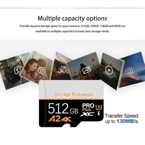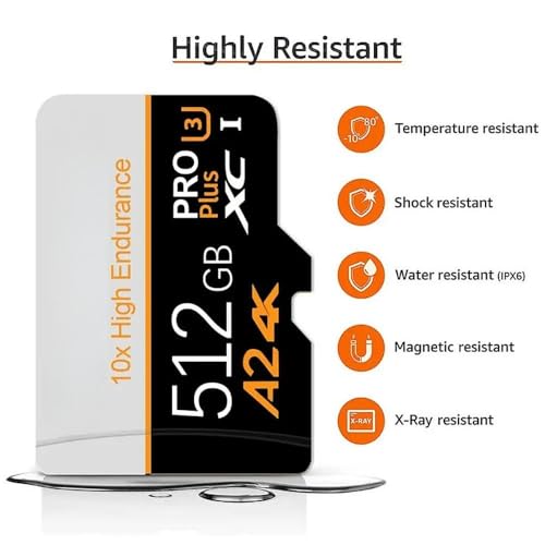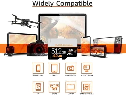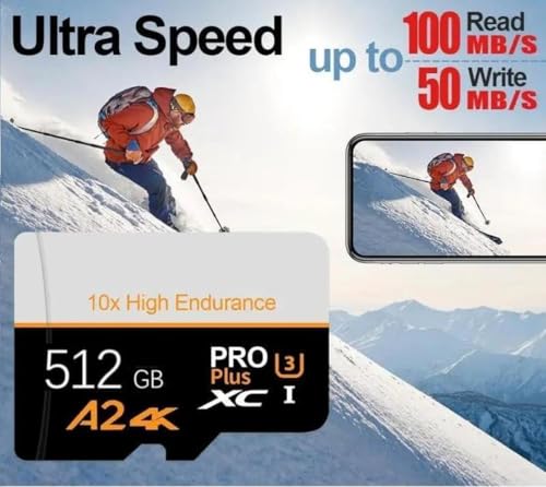 Especificaciones: Tarjeta de Memoria Micro SD TF 512GB Gran Capacidad y Alta Velocidad – Almacenamiento Externo Portátil Compatible con Smartphones, Cámaras, Drones y Dash CAM– Resistente y Duradera