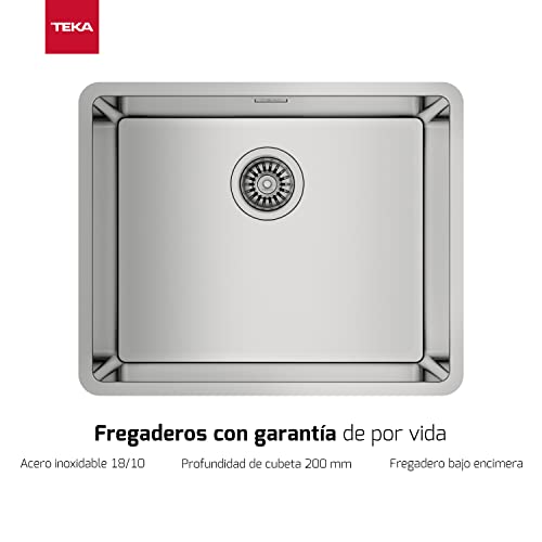 Especificaciones: TEKA Fregadero Bajo Encimera 1 Seno 50cm, Profundidad de 20 cm, Cubeta con SilentSmart, Fregadero Acero Inoxidable, Fácil Instalación, Modelo Be Linea RS15 50.40