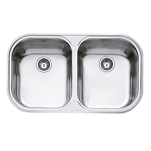 Especificaciones: TEKA Fregadero Encastrado 2 Senos 80cm en Acero Inoxidable con Válvula Canasta – Cubetas de 36cm y Profundidad 17cm – Mueble de 80 cm – Stylo 2C