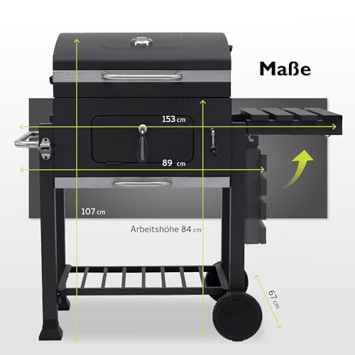 Parrilla cromada, parrilla calentadora y bandeja para carbón, que se pueden ajustar fácilmente en altura con una manivela.