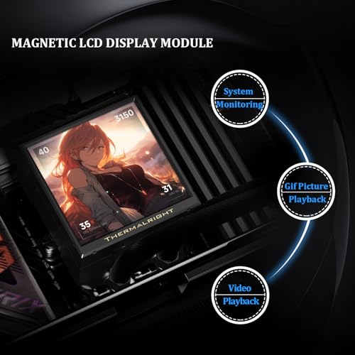 Pantalla magnética de 3.95 pulgadas: el enfriador de CPU tiene una pantalla completa de bisel estrecho de 3.95 pulgadas, y el cabezal de la bomba magnética se puede instalar y quitar rápidamente. Resolución de 480×480, frecuencia de actualización de 60HZ, soporte de video, animación y proyección de pantalla.