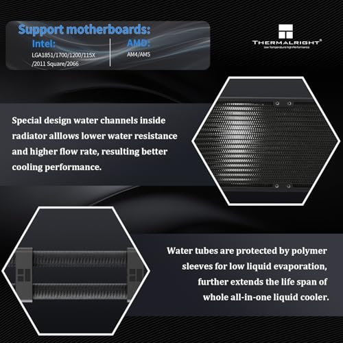 Especificaciones: Thermalright Peerless Vision 360 ARGB Enfriador Aio de CPU negro, sistema de refrigeración de agua con especificación PC 360, pantalla LCD IPS de 3.95 pulgadas con resolución de 480 x 480, para AM4