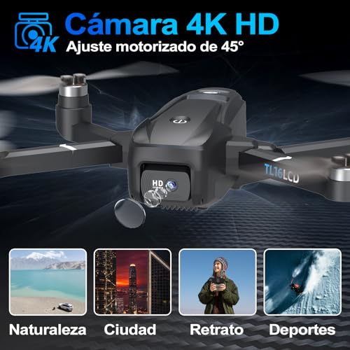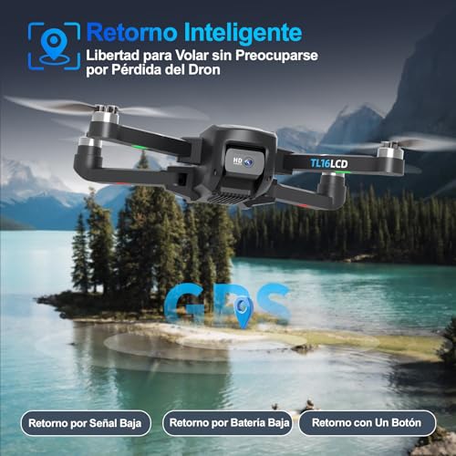 Especificaciones: TL16LCD Drones con Camara 4K, Drone FPV para Principiantes con Mando a Distancia LCD Retorno Automático Follow Me Transmisión en Tiempo Real 5G Dron GPS Plegable RC para Adultos