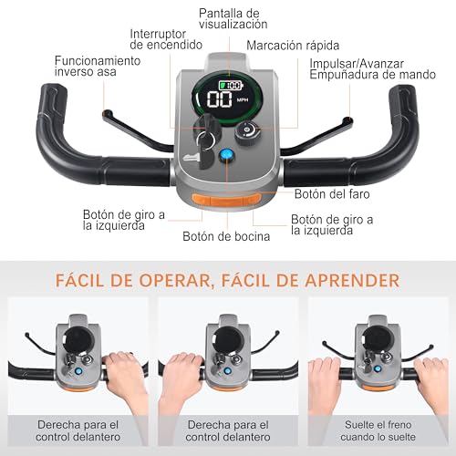 【Velocidad Ajustable y Garantía de 2 Años】Ajusta fácilmente el límite de velocidad del patinete de movilidad plegable de 4 ruedas utilizando el dial de ajuste de velocidad, con una velocidad máxima de 6,4 km/h y una velocidad de reversa de 1,6 km/h. La pantalla intuitiva te permite monitorear sin esfuerzo el nivel de la batería, la velocidad, las luces y el estado de las señales de giro. Este patinete de movilidad para adultos puede subir pendientes de hasta 9°, asegurando una experiencia de conducción cómoda y personalizada, manteniendo la seguridad. Además, viene con una garantía de dos años para tu tranquilidad.