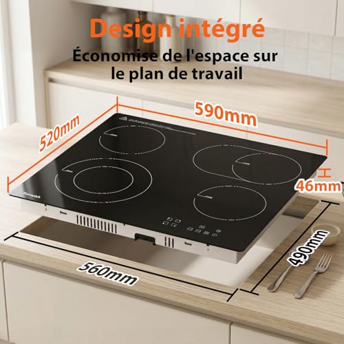 【Diseño humanizado】La vitrocerámica encastrable es silenciosa y silenciosa durante su funcionamiento, no interfiere con el ambiente doméstico y no genera radiación. La velocidad de respuesta del panel táctil es