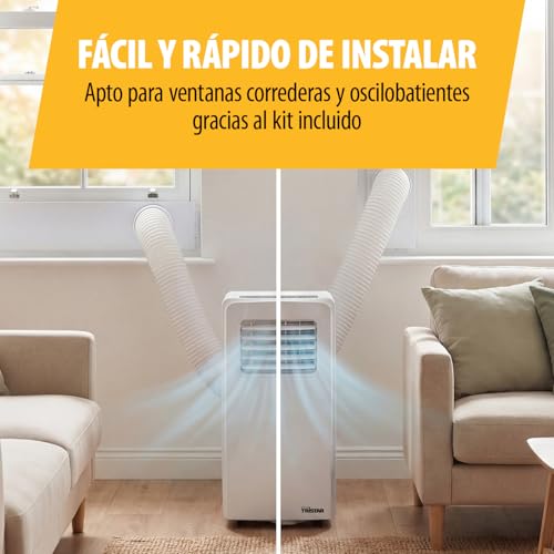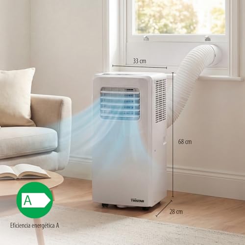 Especificaciones: Tristar Aire acondicionado portátil – 7.000 BTU – 3 en 1 – Deshumidifica, Refresca, Ventila – Hasta 25 m² – Kit para ventana incluido – AC-5478 [Clase de eficiencia energética A]