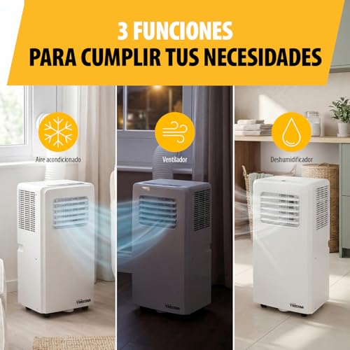 3 EN 1: este aire acondicionado portátil multifunción enfría la habitación, ventila y deshumidifica (0,8 L/día). Estarás listo para afrontar las olas de calor con total comodidad.