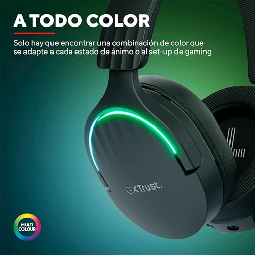 Trust Gaming GXT 491 Fayzo Cascos Gaming Inalámbricos Bluetooth + 2.4 GHz, 7.1 Sonido Envolvente, Batería de 22 Horas, Auriculares Inalámbricos RGB Over-Ear PC PS5 PS4 Switch – Negro