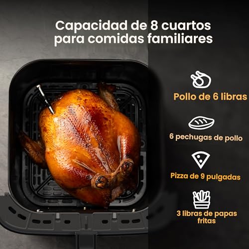 𝟴𝗤𝗧 Capacidad para comidas de tamaño acquainted | Con un área de cocción de 10.three*10.3 pulgadas, prepara fácilmente comidas para four-6 personas. Cocina un pollo entero de 6 libras, 6 pechugas de pollo, una pizza de 9 pulgadas, 4 rebanadas de pan o 9 moldes para cupcakes de una sola vez. Combina sin esfuerzo proteínas con carbohidratos y verduras para una comida bien equilibrada todos los días.