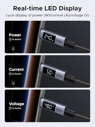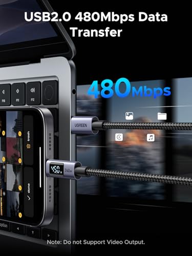 Especificaciones: UGREEN Cable USB-C a USB-C de 240 W de carga rápida, 3.3 pies