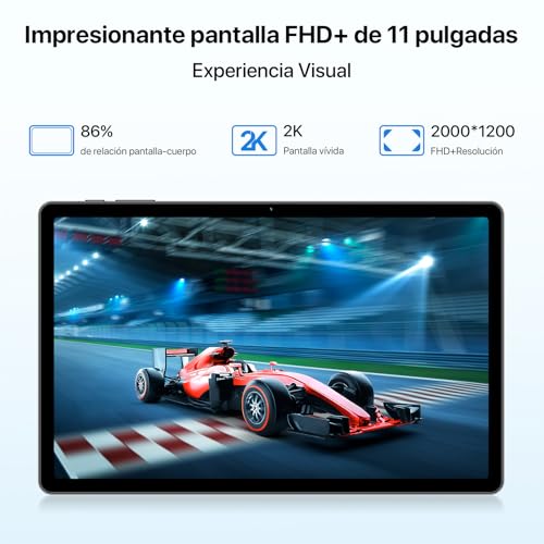 Tablet 11 pulgadas + 2K resolución: La tablet 11 pulgadas ofrece imágenes nítidas, detalles más claros y colores vivos. La tableta tiene una impresionante resolución 2K ultra alta (2000*1200) para una experiencia más envolvente al ver vídeos, jugar o navegar por Internet.