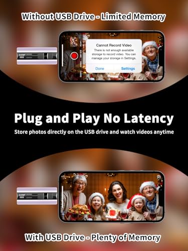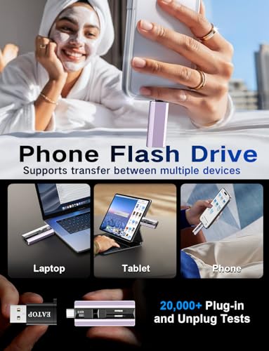 Alta capacidad y respaldo sin esfuerzo: esta unidad flash USB de almacenamiento USB compatible con iPhone maneja fácilmente los videos 4K más grandes de la actualidad, fotos de alta resolución y contactos. La copia de seguridad sencilla libera espacio al instante, por lo que nunca te perderás capturar momentos importantes. Perfecto para usuarios de iPhone, iPad, Android y PC. (Nota: Para iPhone/iPad no se requiere aplicación; para Android solo necesita OTG habilitado, no hay aplicación adicional)
