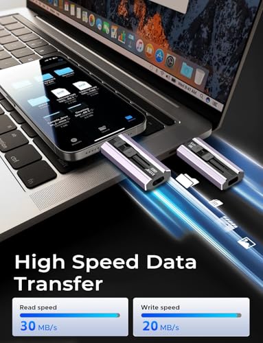 Transferencias rápidas en cualquier lugar: con chips de alta velocidad mejorados, esta unidad de almacenamiento externo portátil para teléfono permite transferencias masivas instantáneas de archivos (velocidad de lectura de hasta 30 MB/s y velocidad de escritura de 15 MB/s), no requiere WiFi ni cables de datos. Ahorra tiempo compartiendo fotos, moviendo grandes proyectos de video, ya sea que estés viajando, trabajando o creando contenido sobre la marcha.