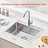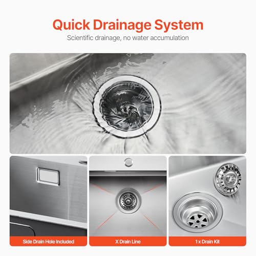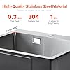 Fácil instalación de montaje superior: Nuestro fregadero de acero inoxidable no requiere modificaciones importantes en los gabinetes o la encimera de la cocina. El borde de acero inoxidable 304 ultra grueso de 3 mm permite una instalación segura de montaje superior y el cuerpo grueso del fregadero garantiza durabilidad.