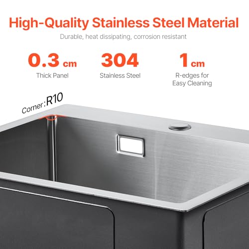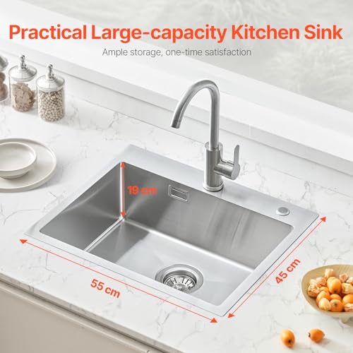 VEVOR Fregadero de Cocina de Acero Inoxidable 304 con Montaje Superior, Lavabo de Una Sola Cubeta Empotrable de Estilo Rústico con Accesorios, para Cocina de Preparación, Lavadero, 550 x 450 x 190 mm