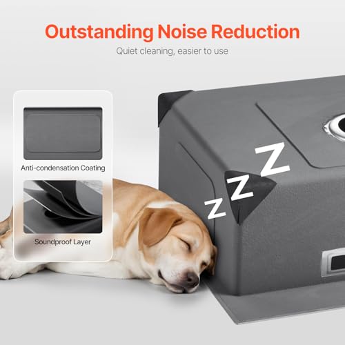 Capa de insonorización y anticondensación: Este fregadero para lavavajillas doméstico es ultrasilencioso y está equipado con almohadillas de goma más gruesas y suaves que amortiguan el ruido. Las almohadillas insonorizadas y los materiales de aislamiento de la capa base reducen el ruido, lo que garantiza una excelente reducción del sonido y un funcionamiento silencioso, mientras que la capa base gruesa evita la condensación.