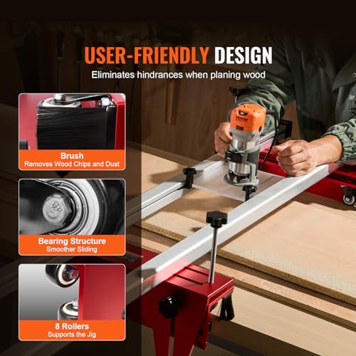 Funciones fáciles de usar: Nuestro trineo de mesa enrutador se ensambla en minutos. Con cepillos incorporados para mantener a raya las virutas de madera y el polvo, rodamientos de rodillos mejorados para un movimiento más suave y 8 rodillos para un soporte sin esfuerzo, está diseñado para su comodidad. ¡Saluda a la carpintería sin complicaciones!