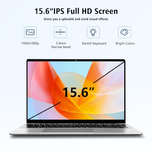 Pantalla Full HD: la computadora portátil VGKE para estudiantes cuenta con una pantalla IPS Full HD de 15.6 pulgadas 1920 x 1080 con bisel de solo 0.232 in, lo que te permite sumergirte en un espacio de pantalla más grande, y la función antirreflejos protege tus ojos de la luz azul dañina.