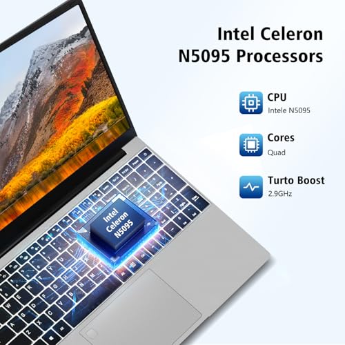 VGKE Computadora portátil de 15.6 pulgadas, portátil estudiantil de 1920 x 1080p con teclado retroiluminado de tamaño completo, procesador Celeron N5095 de cuatro núcleos, memoria DDR4 de 12 GB de RAM