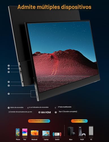 Compatibilidad verdaderamente amplia: le permite conectar su computadora portátil, PC, MAC, tableta, teléfono, XBOX, PS3/PS4/PS5, switches y más a través del puerto USB-C o HDMI, ofrece una conexión estable y una transmisión de datos estable. Disfruta de un gran sonido con los altavoces estéreo duales incorporados, perfectos para tu viaje de negocios, viajes o configuración de juegos de entretenimiento en casa.