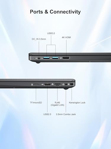 Conectividad y seguridad: equipado con RJ45(Gigabit LAN), HDMI 1.4 (compatible con pantalla externa de 4K a 30Hz), RJ45 (LAN Gigabit), USB 3.0, USB 2.0 y ranura microSD (hasta 512 GB de almacenamiento ampliable). Cuenta con ranura de bloqueo Kensington para seguridad física y conector de audio combinado de 0.138 in para una conectividad versátil