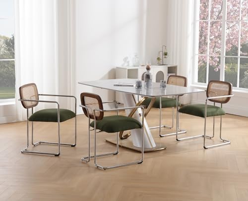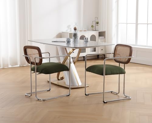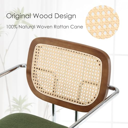 Wahson Sillas de Comedor Moderna Juego de 2 Sillas de Cocina con Patas Aceros,Sillas de Salón Respaldo de Ratán con Reposabrazos para Hogar/Restaurante,Verde Lino