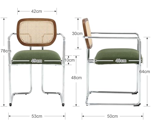 Especificaciones: Wahson Sillas de Comedor Moderna Juego de 2 Sillas de Cocina con Patas Aceros,Sillas de Salón Respaldo de Ratán con Reposabrazos para Hogar/Restaurante,Verde Lino