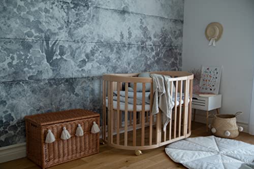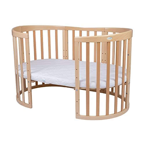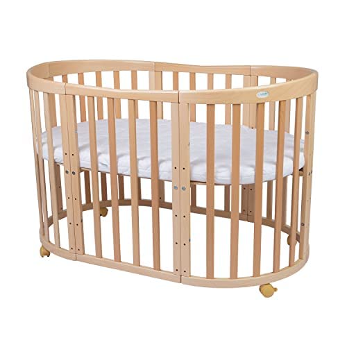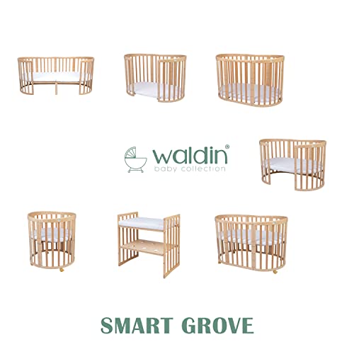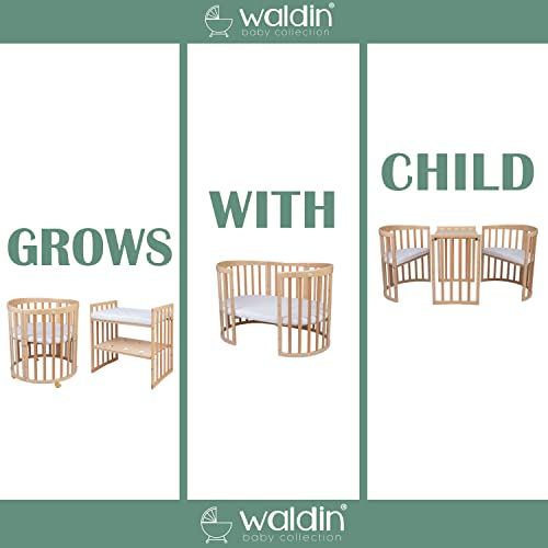 Waldin Cuna Ovalada 7en1 – Cuna con colchón y Ruedas – Cuna con Cambiador – Cuna de Crecimiento – Cama para bebé – Cama colecho de Madera