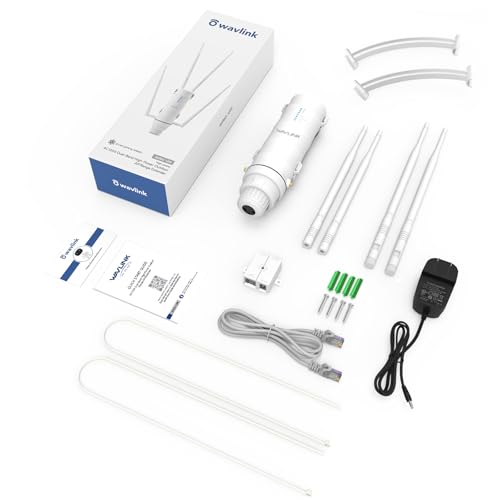 WAVLINK AC1200 Extensor WiFi de largo alcance resistente a la intemperie para exteriores, punto de acceso inalámbrico con POE pasivo, banda dual 5G+2.4G, 4x7dBi Antenas Omni direccionales, soporta
