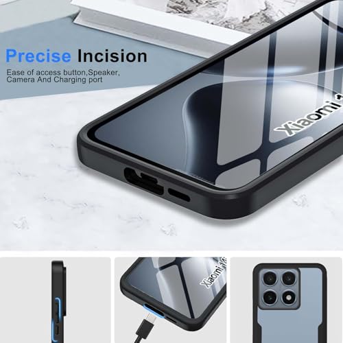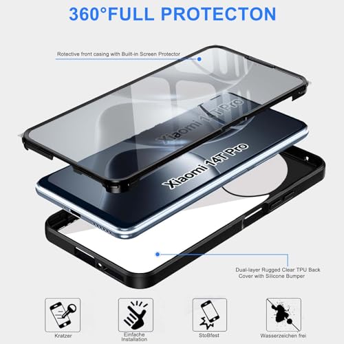 Especificaciones: WeiCase Funda para xiaomi 14T Pro, Transparente 360° Protección Funda con Protector de Pantalla Integrado Antigolpes Silicona Carcasa para xiaomi 14T Pro, Negro