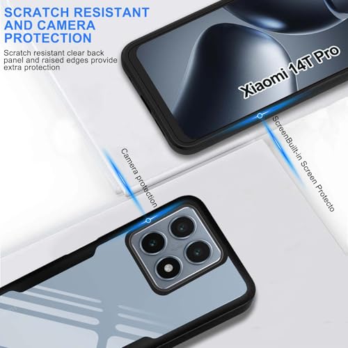 WeiCase Funda para xiaomi 14T Pro, Transparente 360° Protección Funda con Protector de Pantalla Integrado Antigolpes Silicona Carcasa para xiaomi 14T Pro, Negro