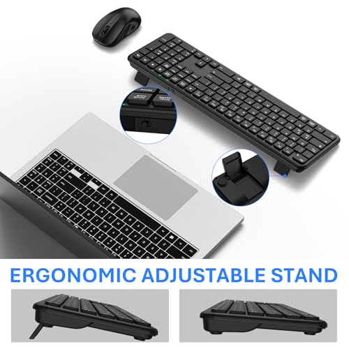 Wireless Keyboard and Mouse Combo, Full-Size Silent Ergonomic Keyboard and Mouse, Sleep Mode, Long Battery Life, 2.4G Lag-Free Cordless Mice Keyboard Set for Computer, Laptop, PC, Mac, Windows (Black)