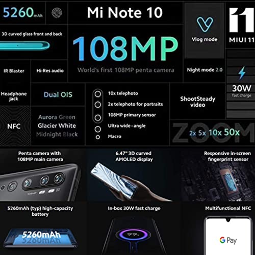 Especificaciones: Xiaomi Mi Note 10, 6GB RAM, 128GB, Negro (Reacondicionado)